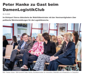 „Logistik trifft Politik“: Der Logistik Express berichtet über unseren Diskussionsabend mit Bundesminister Peter Hanke im thinkport VIENNA. Unter diesem Link finden Sie den Beitrag: https://www.logistik-express.com/damenlogistikclub-logistik-trifft-politik/