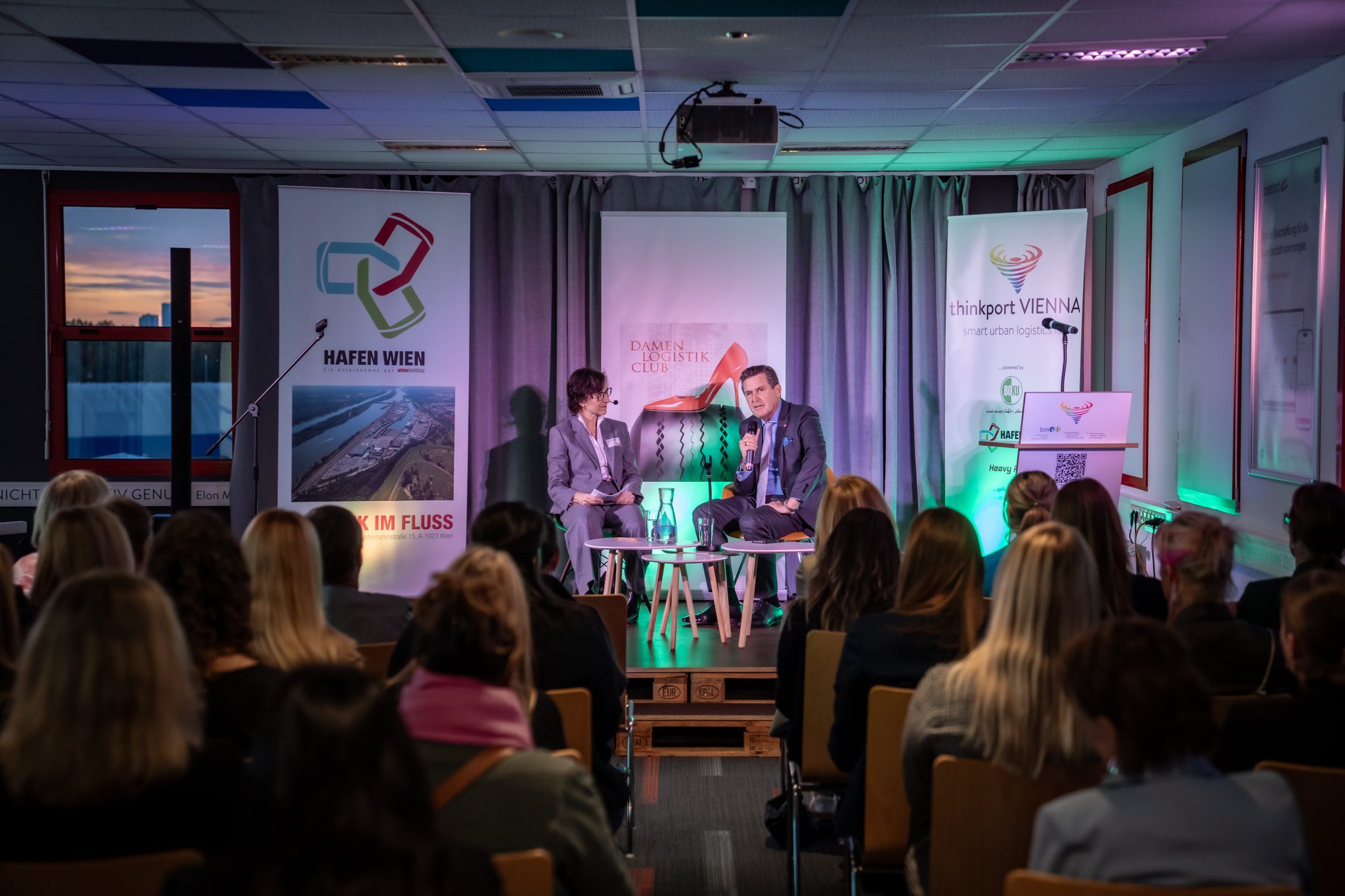 In der von Doris Pulker-Rohrhofer, DLC-Vorständin und Technische Geschäftsführerin des Hafen Wien, moderierten Gesprächsrunde wurden die Schwerpunkte des Ministeriums praxisnah beleuchtet: Innovation und Technologien der Zukunft, Forschungskooperationen und Förderprogramme, Fachkräftemangel und Schlüsselkompetenzen sowie nachhaltige Infrastrukturprogramme und Stadtlogistik. Pulker-Rohrhofer betont: